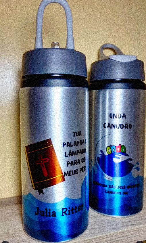 Cansado de garrafas sem graça? Agora você pode carregar suas memórias mais queridas por onde for! Imagine sua foto favorita, um desenho incrível ou uma frase que te inspira estampada na sua garrafa, te acompanhando na academia, no trabalho, na faculdade ou naquele rolê com os amigos. 🤩